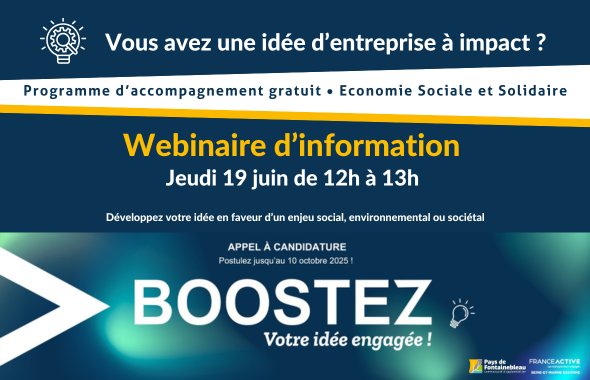 Découvrez l'appel à candidature de la 5e éd. du programme "Boostez votre idée d'entreprise engagée au Pays de Fontainebleau".