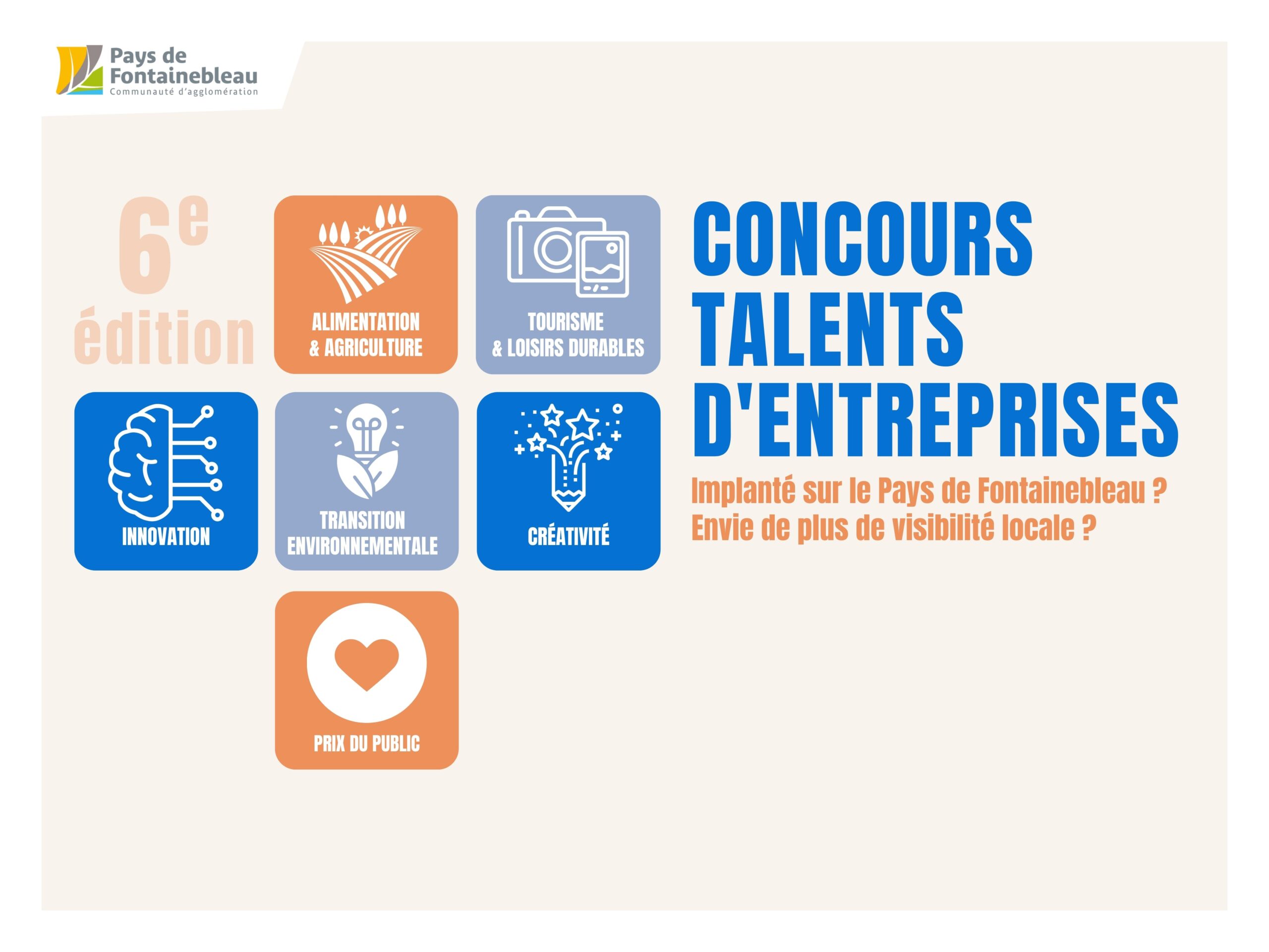 Ce concours s’adresse aux sociétés et entreprises individuelles implantées sur l’une des 26 communes du Pays de Fontainebleau. Il se compose de différents prix thématiques et d’un prix du public.